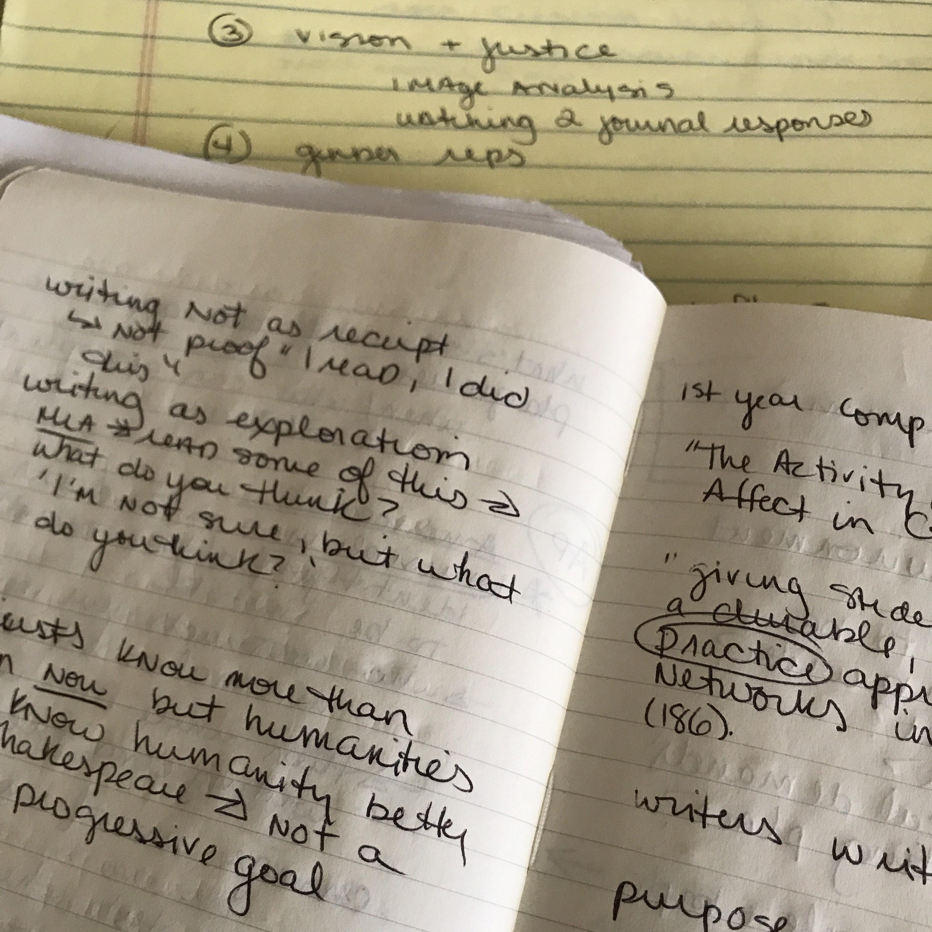 - Process vs. Post-process and Assemblage Writing. It was interesting learning more of the history of process (1970s) and post-process (post 1986) writing theory. One idea that really stuck with me from the discussions I had over the past three days is that process implies formula, while post-process is looking at the way ideas, evidence, discussion fit together to suggest new relationships. In art school, I was always taught to “know the rules before you break them,” and in some ways knowing and understanding the formula (5 paragraph essay I’m looking at you!) is a way to learn how structure works and the relationship between evidence and analysis that is an excellent starting point for students, but it’s not where I want them to end. I’ve been grappling with how to break the students out of that structure, especially in this past year because it is so engrained in students by senior year, and I think post-process and assemblage theory is a way to restructure my approach. Admittedly, I have a lot more reading and thinking to do about this, but the discussions and readings from the Summer Institute definitely sparked a curiosity not just for the UConn course but for my sophomores and APLit students too!